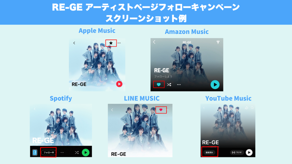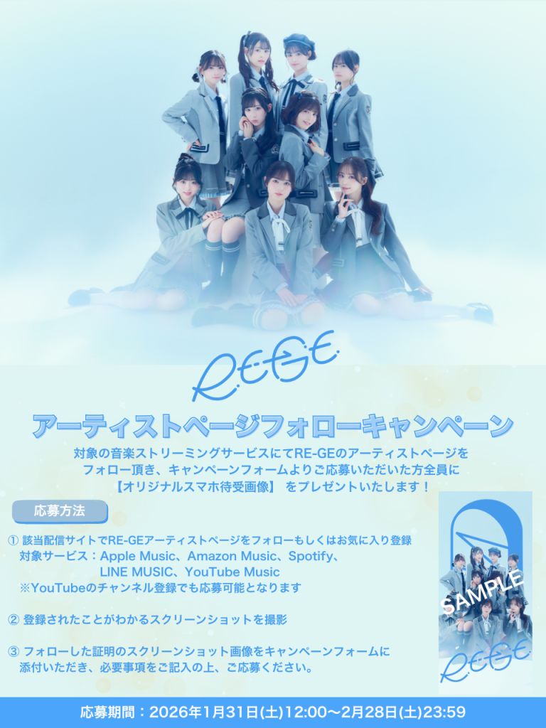 RE-GEアーティストデビューを記念して、アーティストページフォローキャンペーンを開催いたします!